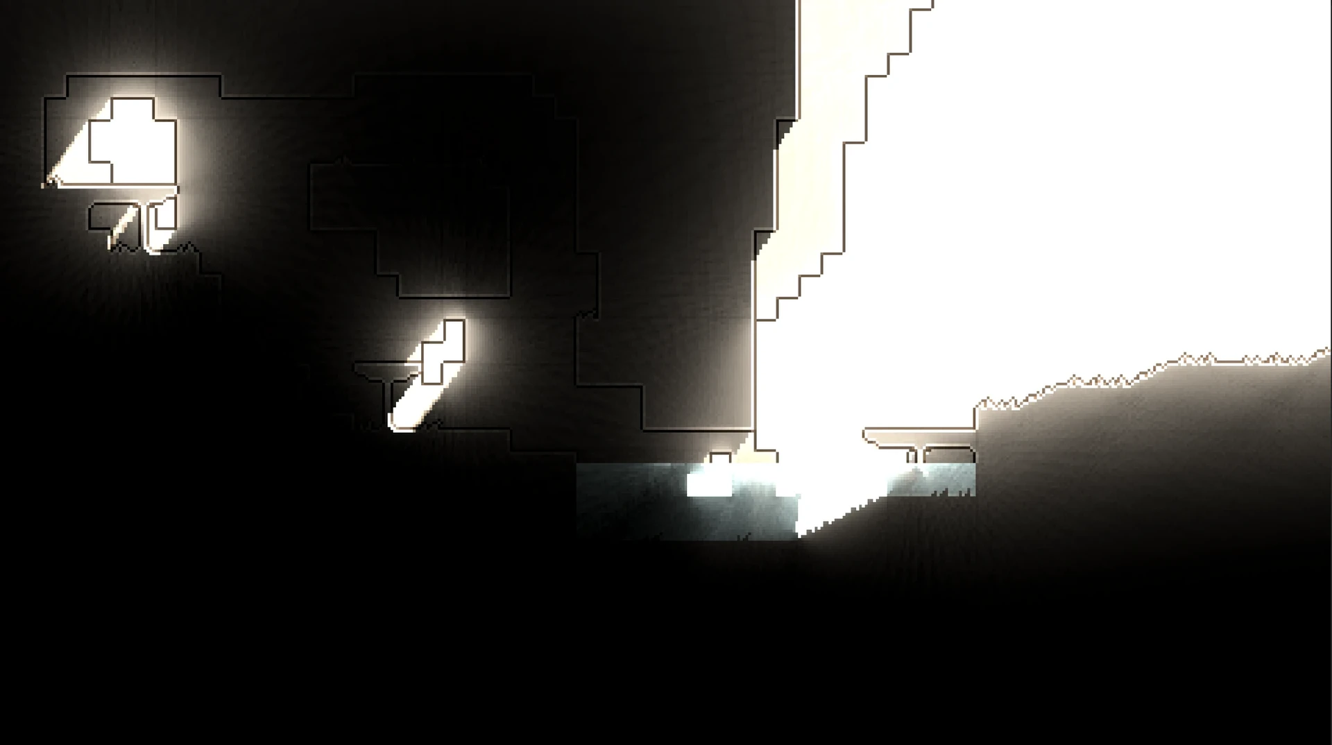 Lighting in the scene is intended to be used to subtly guide the player on where to go. Days and bright and safe feeling while nights are much darker, only allowing you to see a small amount without a light source to emphasize its danger.